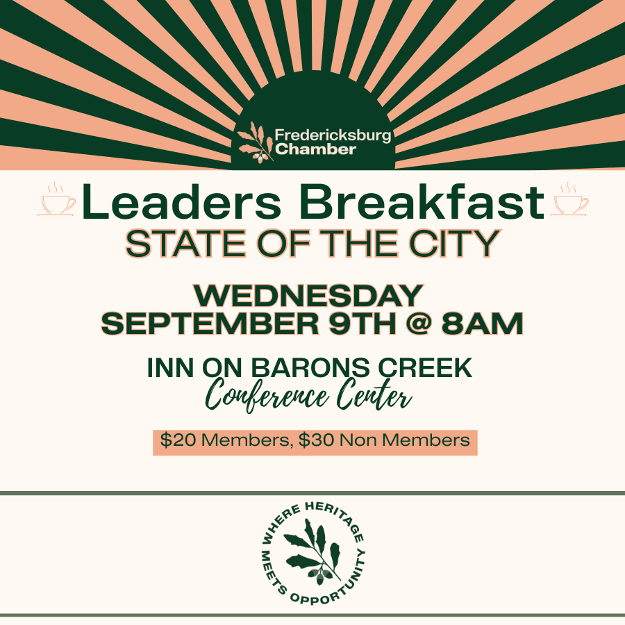 The Leaders Breakfast Series is designed to bring business and community members together to learn about important local issues and hear directly from leaders who can provide insight and updates on topics shaping the future of Fredericksburg and Gillespie County.