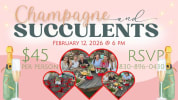 Enjoy a fun evening with your friends! Plant a beautiful heart-shaped succulent planter and enjoy some champagne! Each guest will receive a heart shaped planter, 4 succulents, 2 glasses of champagne, and chips and salsa. ...