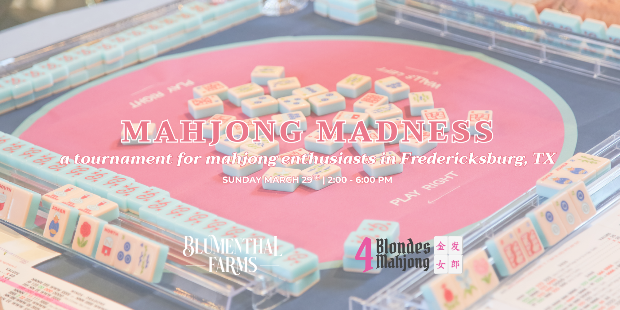 Presented in partnership with 4 Blondes Mahjong, this isn't just a game night, it's THE mahjong event of the Spring bringing together players from Fredericksburg and across the Texas Hill Country.