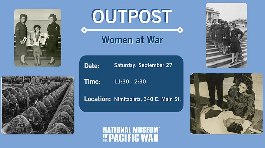 When war came to America in December of 1941, it wasn't only the men who answered the call to service. Thousands of women across the country gave their all to supporting the war effort at home and overseas. From victory gardens to airplane manufacturing, from rationing food to training fighter pilots, come to this outpost to learn how American women did their part during World War II! Join us at the Nimitzplatz on Main Street between 11:30 a.m. - 2:30 p.m.. The Outposts are free and open to the public, the public, no ticket needed. https://www.pacificwarmuseum.org/event/outpost-womenatwar